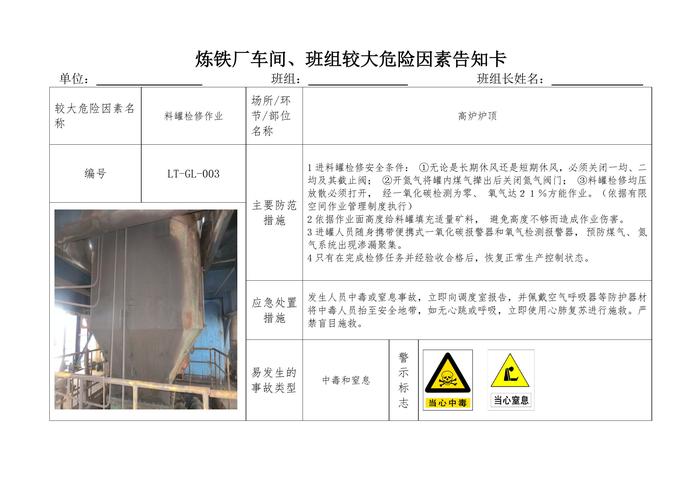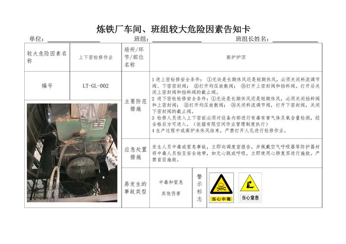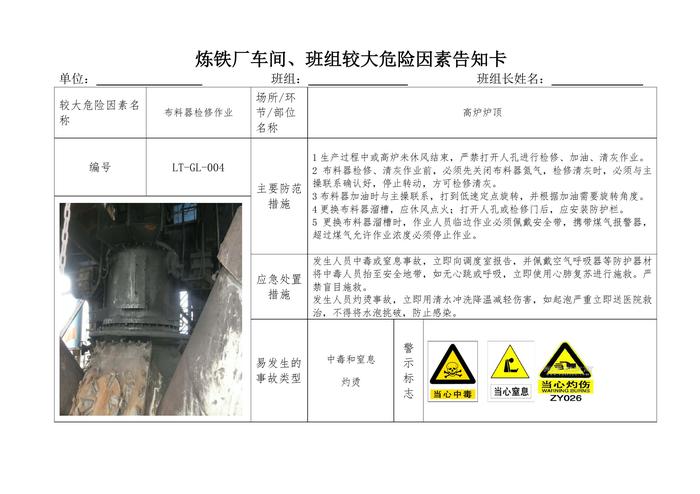煉鐵廠車間、班組較大危險因素告知卡(41頁)(1)doc