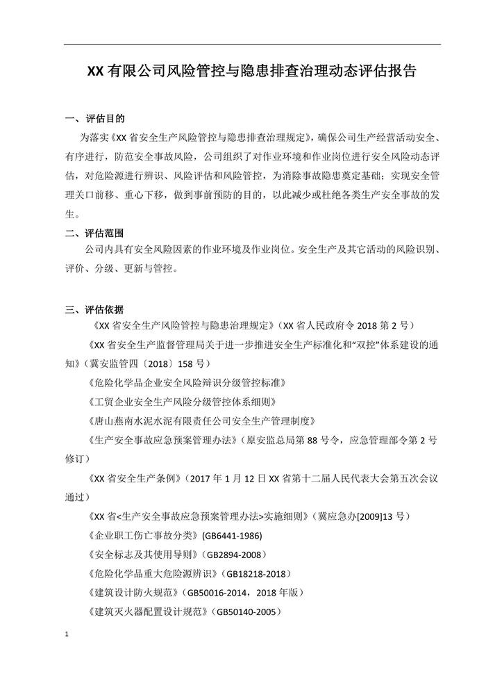 XX有限公司風險管控與隱患排查治理動態(tài)評估報告(1)doc