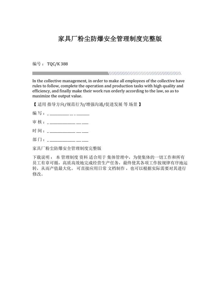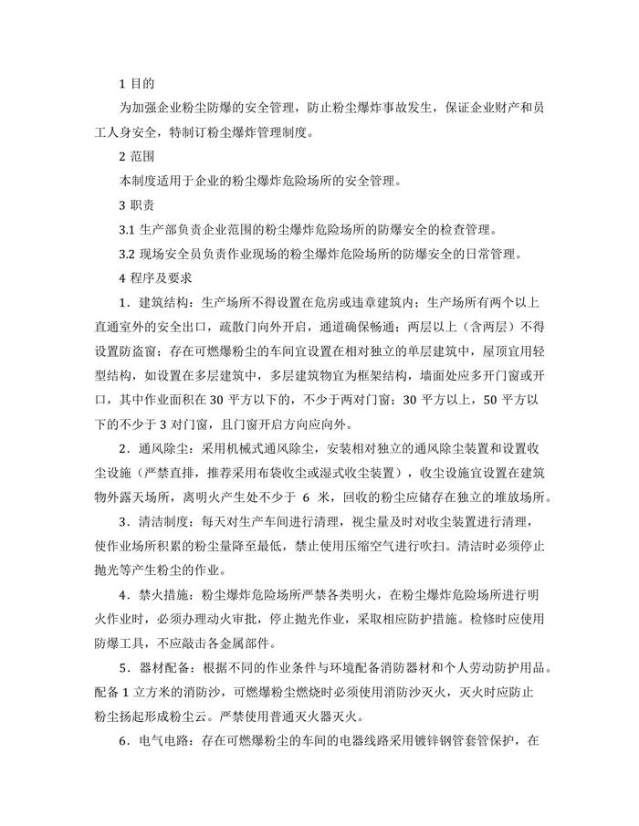 家具廠粉塵防爆安全管理制度完整版docx