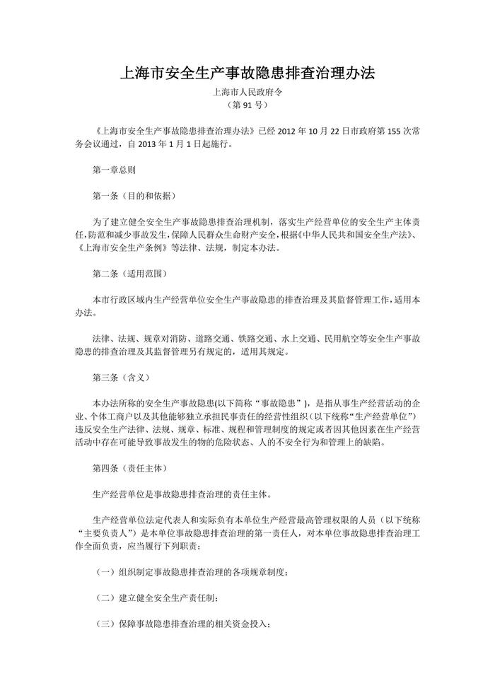 海市安全生產(chǎn)事故隱患排查治理辦法docx