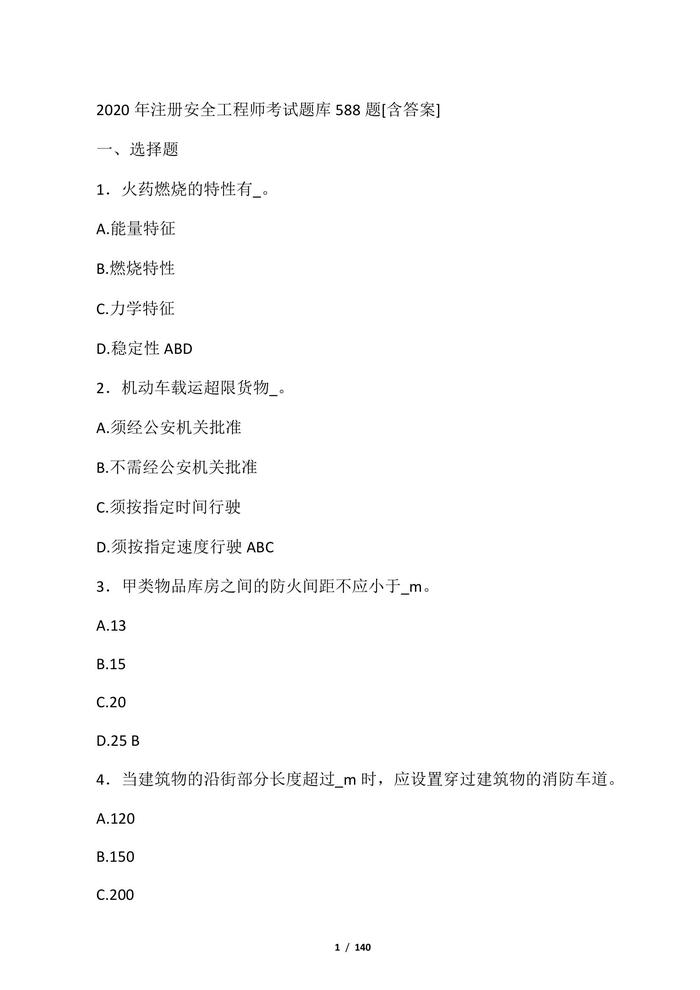 【題庫】精選2020年注冊安全工程師588題庫(139頁)docx
