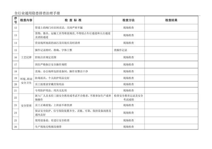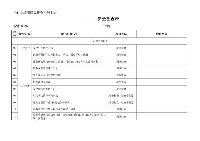 全行業(yè)通用隱患排查治理手冊(cè)檢查記錄(1)doc
