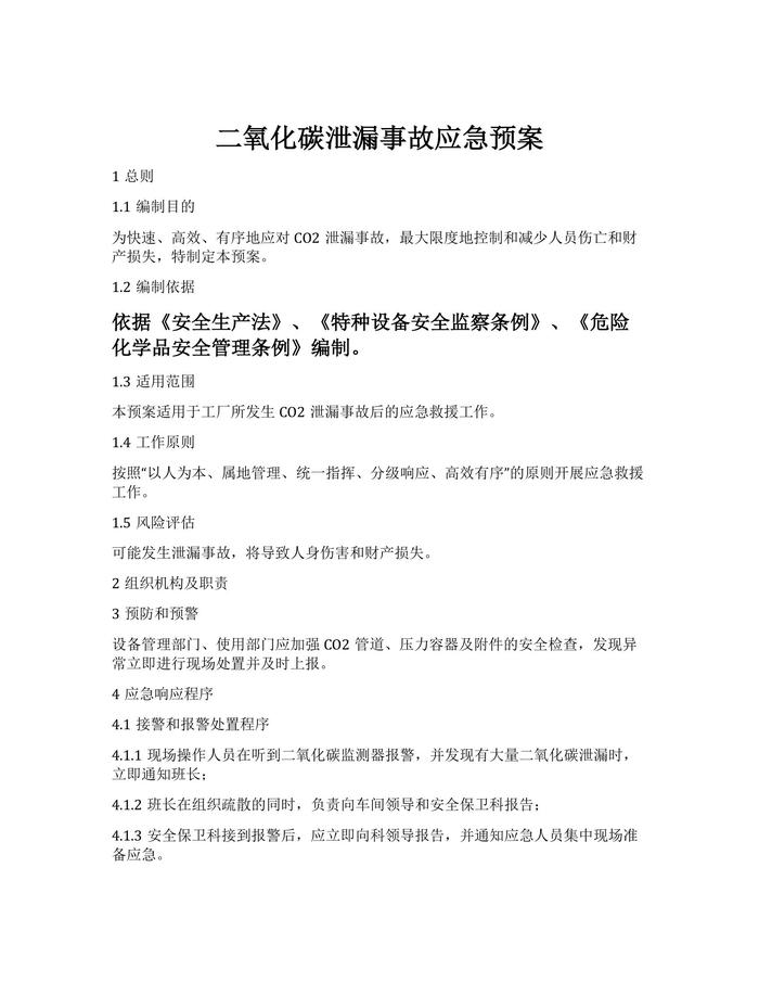 二氧化碳泄漏事故應(yīng)急預(yù)案(1)docx