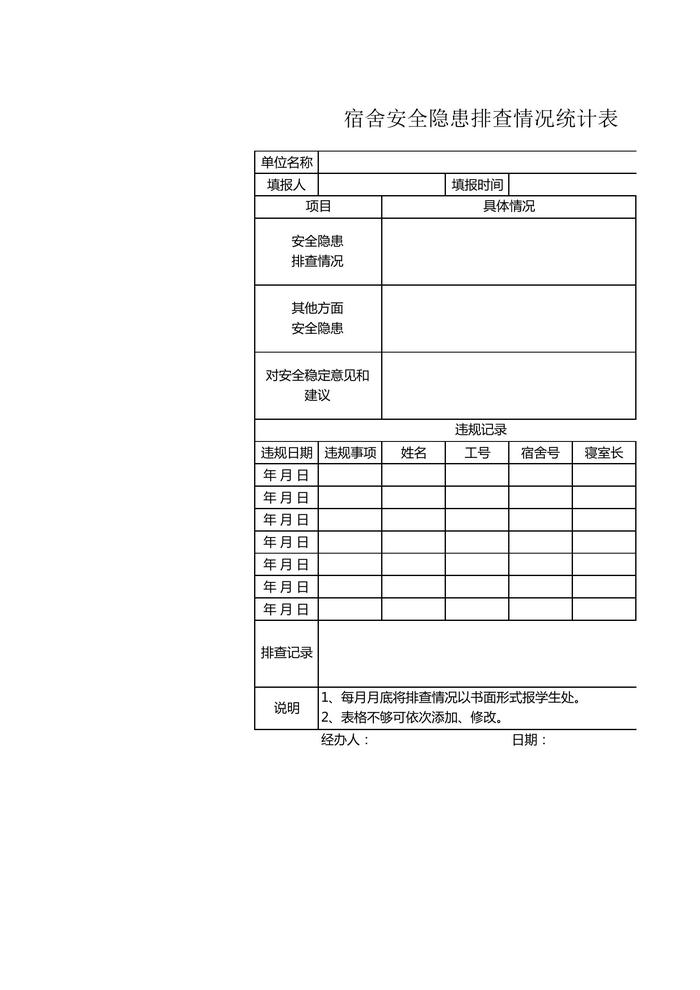 【表格】宿舍安全隱患排查情況統(tǒng)計(jì)表(1)xls