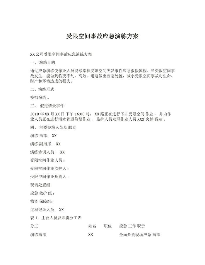 受限空間事故應(yīng)急演練方案docx