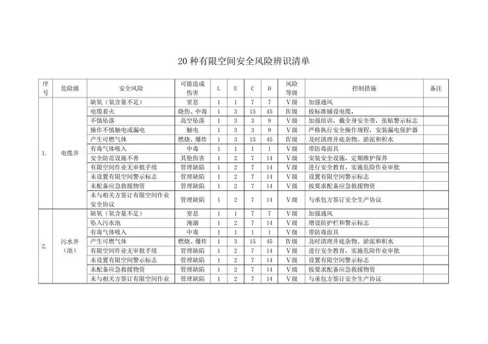 第2部分:20種有限空間安全風(fēng)險(xiǎn)辨識(shí)清單docx