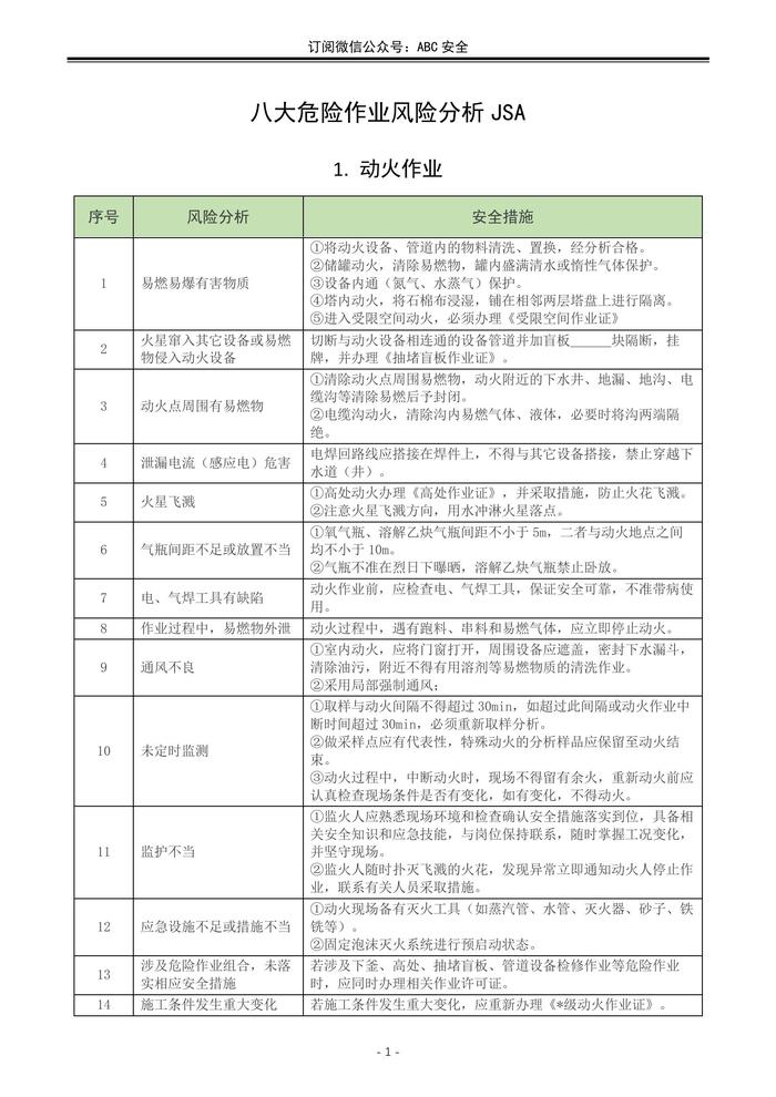 八大危險(xiǎn)作業(yè)風(fēng)險(xiǎn)分析JSAdocx