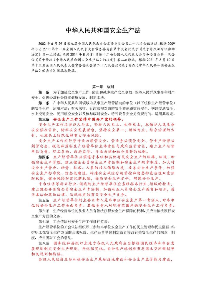 2021版中華人民共和國安全生產法docx