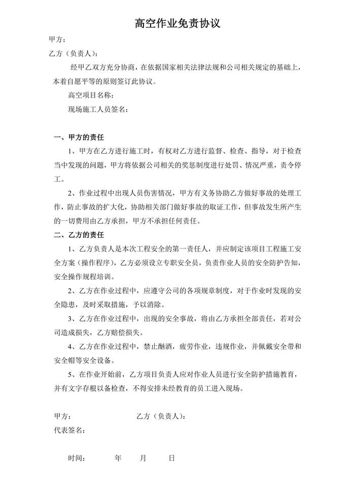 高空作業(yè)免責(zé)協(xié)議(1頁)(1)doc