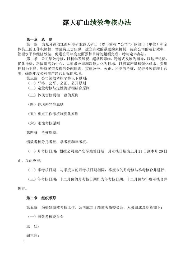 露天礦山績效考核方案(13頁)(1)doc