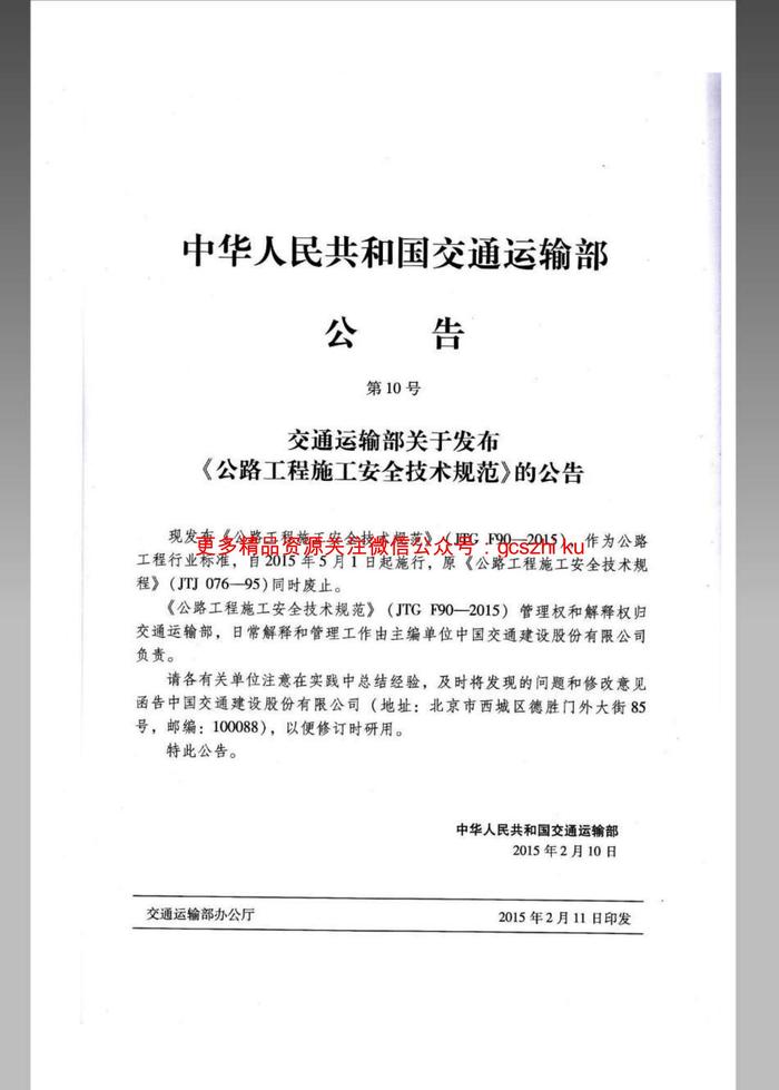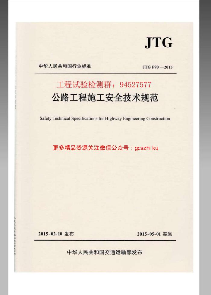 JTG F90-2015 公路工程施工安全技術(shù)規(guī)范pdf
