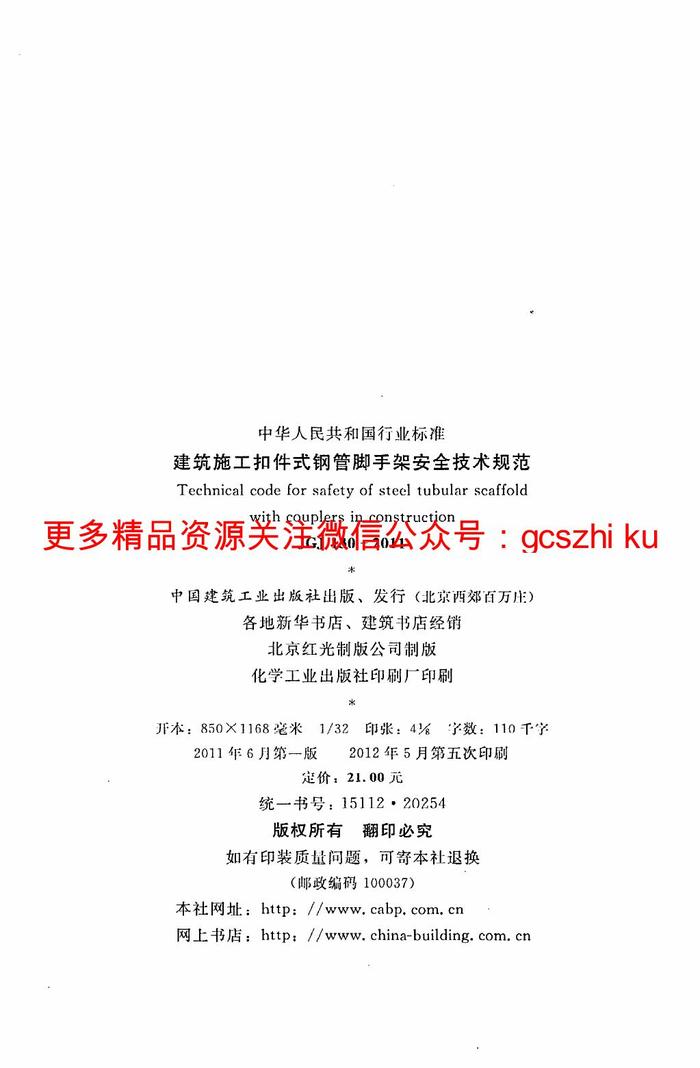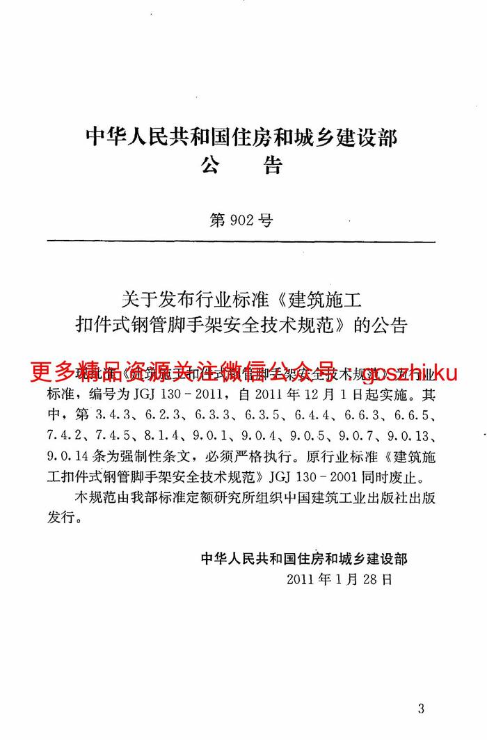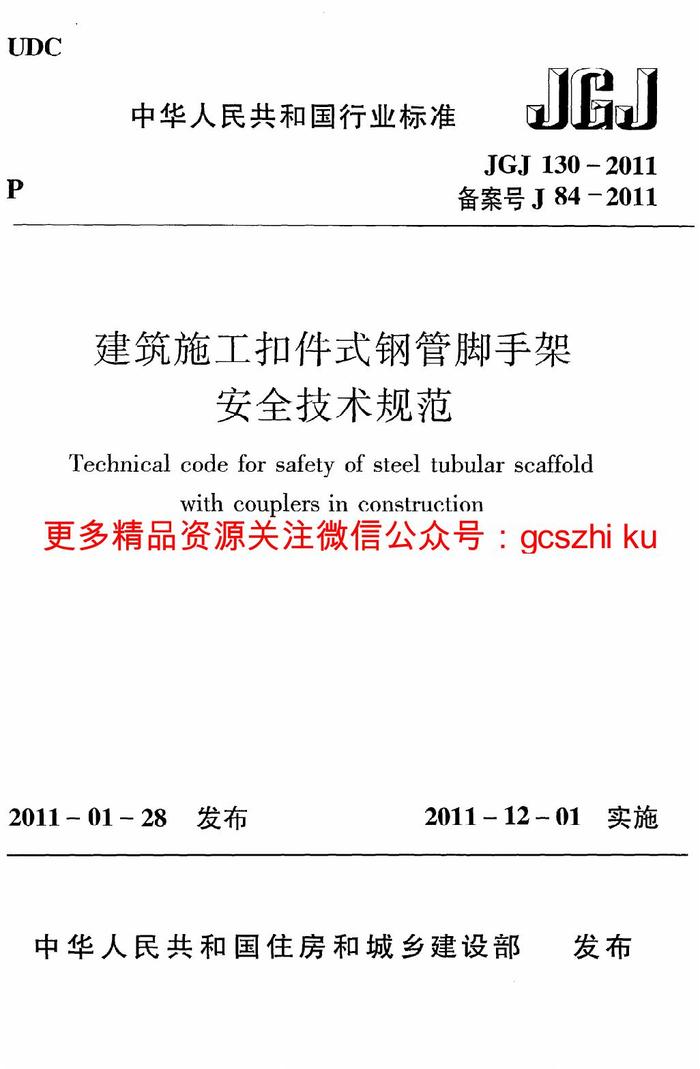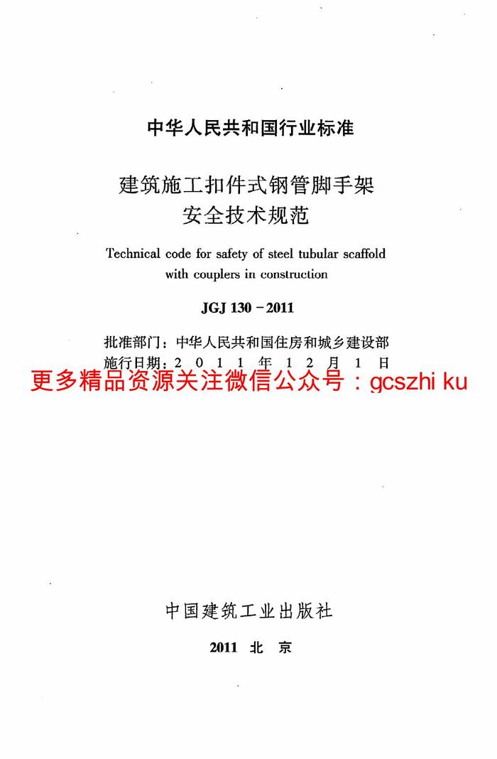 JGJ130-2011 建筑施工扣件式鋼管腳手架安全技術(shù)規(guī)范pdf