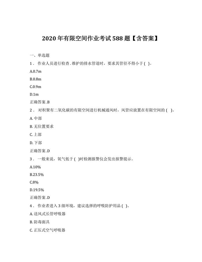 【題庫】2021 年有限空間作業(yè)考試 588 題【含答案】(101頁 )(1)docx