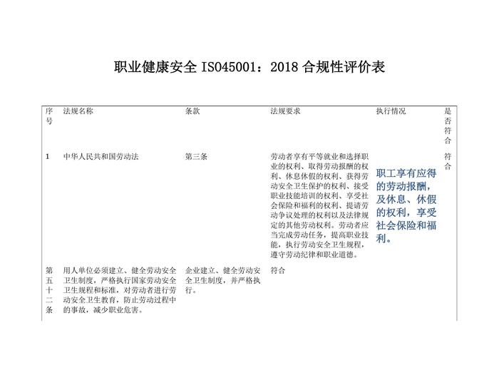 職業(yè)健康安全I(xiàn)SO45001:2018合規(guī)性評(píng)價(jià)表docx