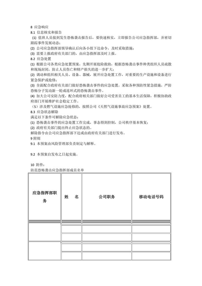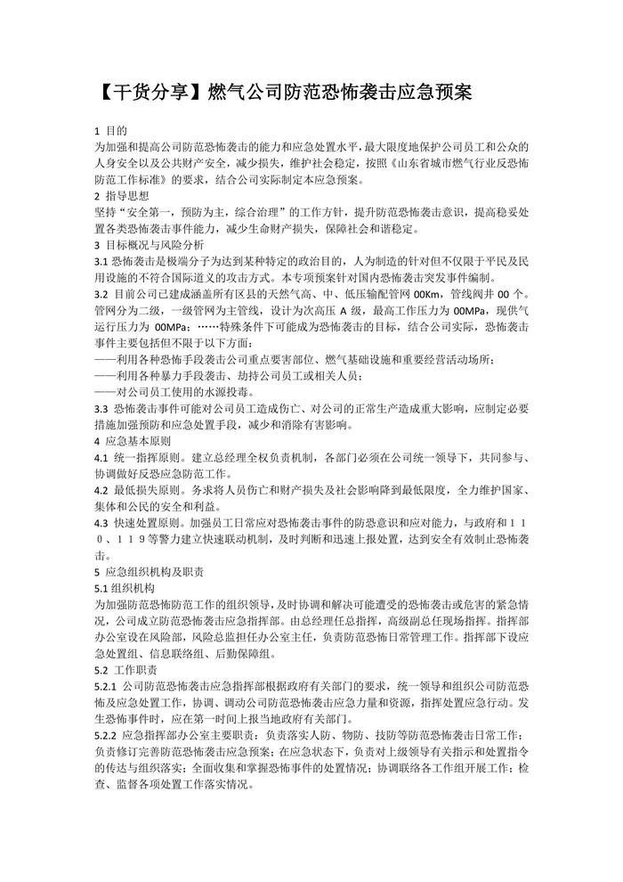 【干貨分享】燃?xì)夤痉婪犊植酪u擊應(yīng)急預(yù)案docx
