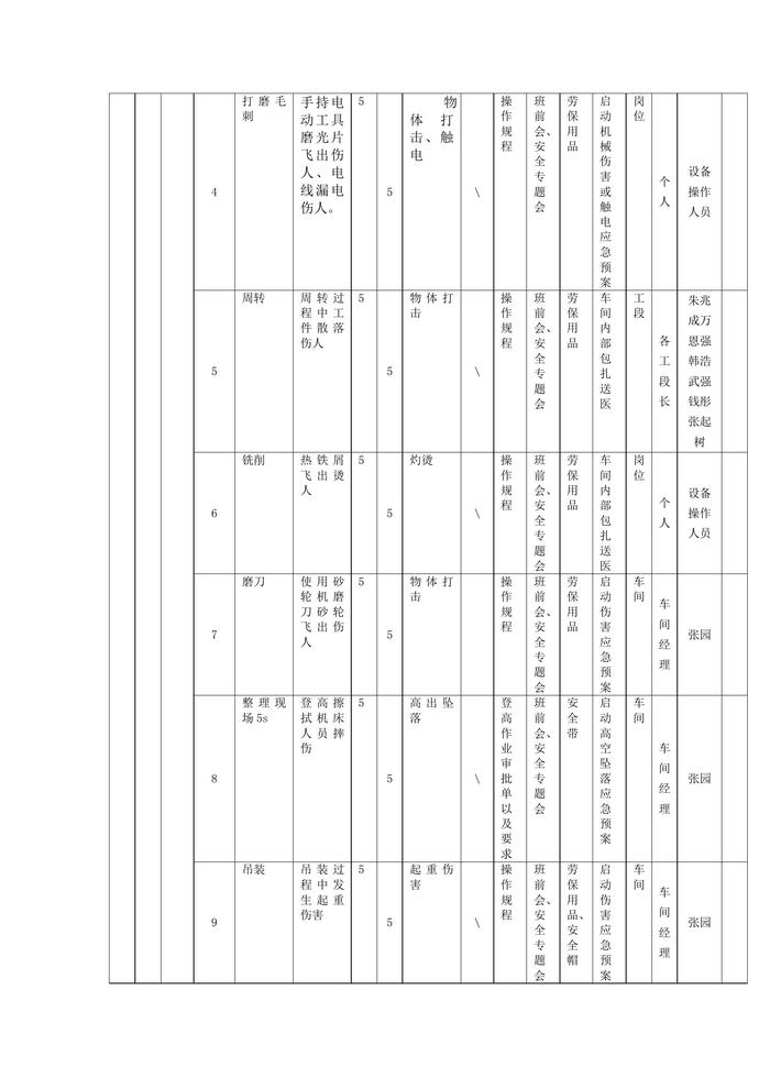 機(jī)加工作業(yè)活動(dòng)風(fēng)險(xiǎn)分級(jí)管控清單docx