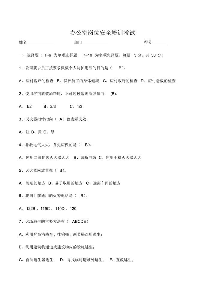 考試試題答案docx