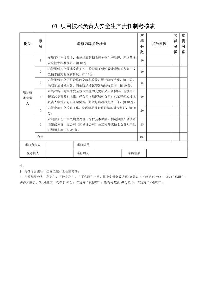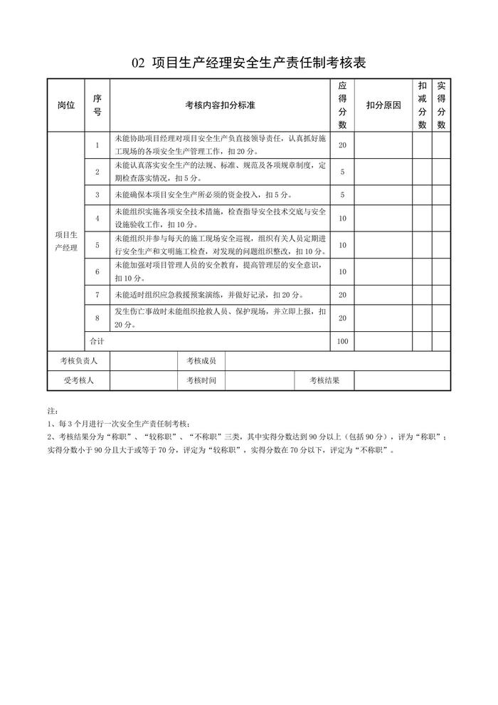 E20201013工程項目安全生產(chǎn)責(zé)任制考核表匯編doc