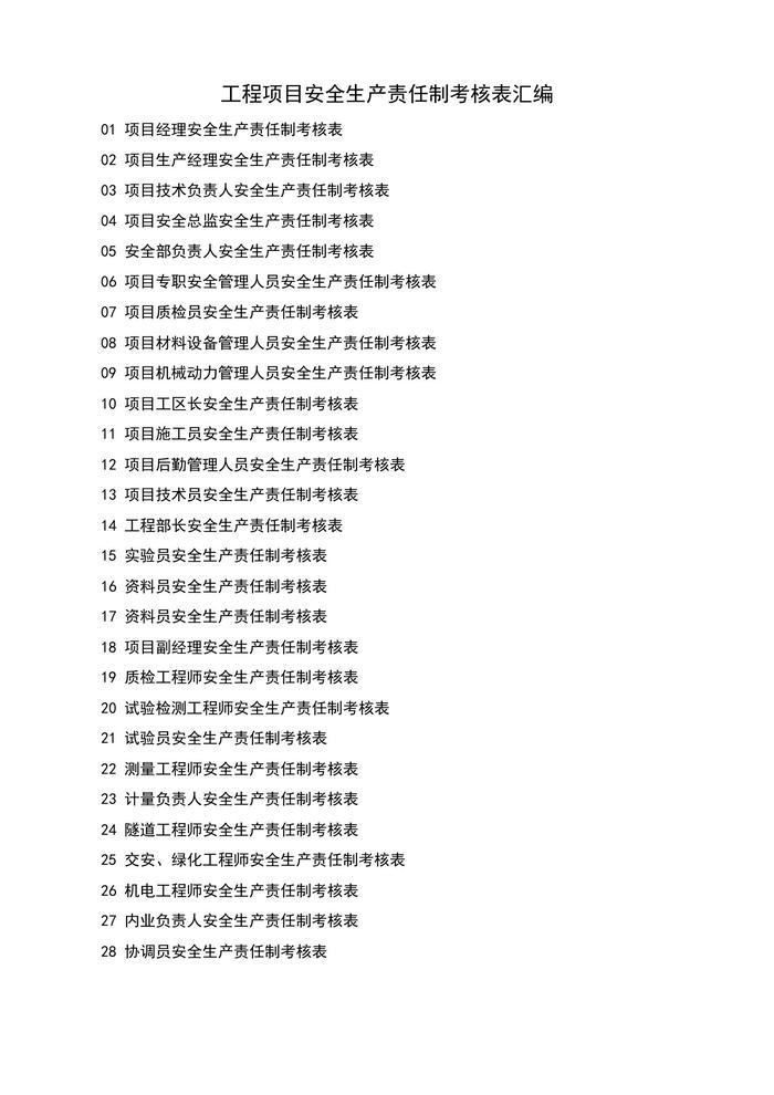 工程項目安全生產(chǎn)責(zé)任制考核表匯編doc