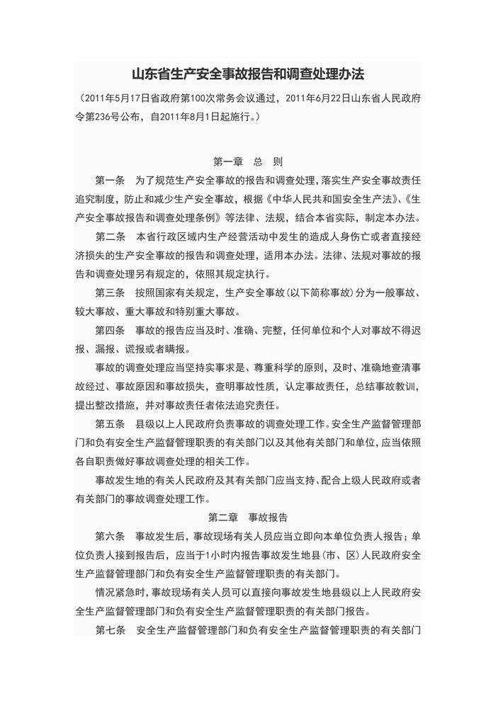 山東省生產(chǎn)安全事故報(bào)告和調(diào)查處理辦法doc