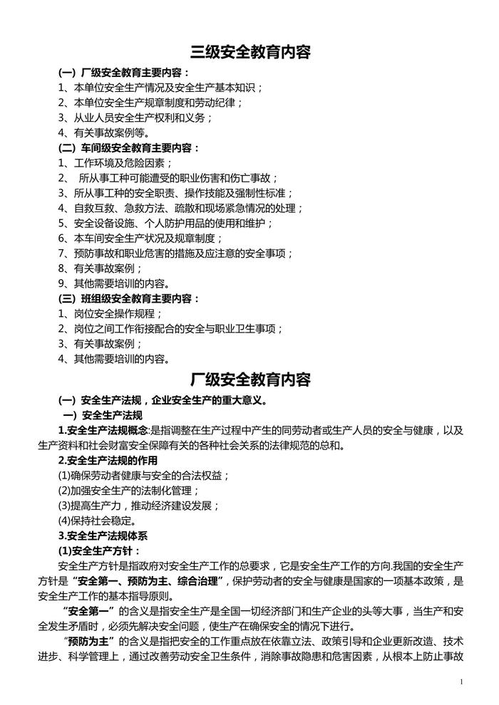 三級(jí)安全教育廠級(jí)教育內(nèi)容doc