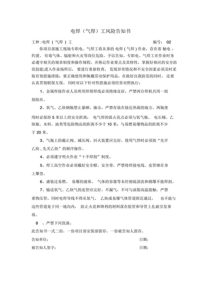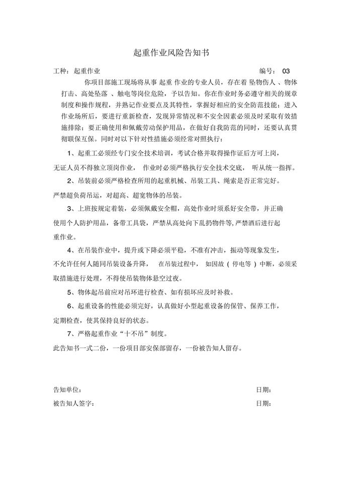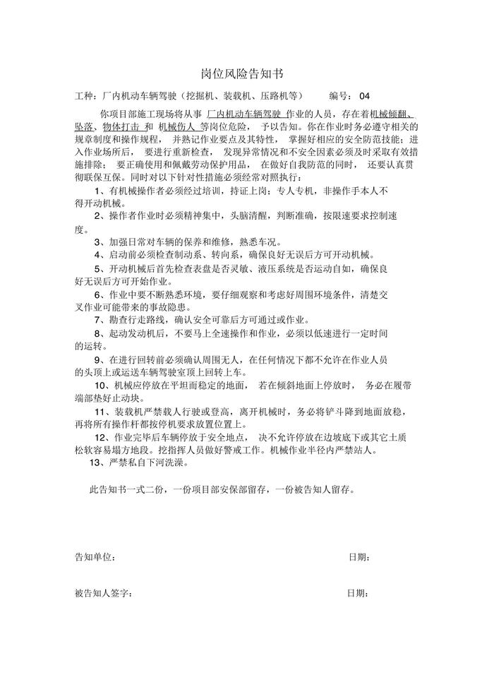 高速公路工程崗位風(fēng)告知書(shū)(1)docx