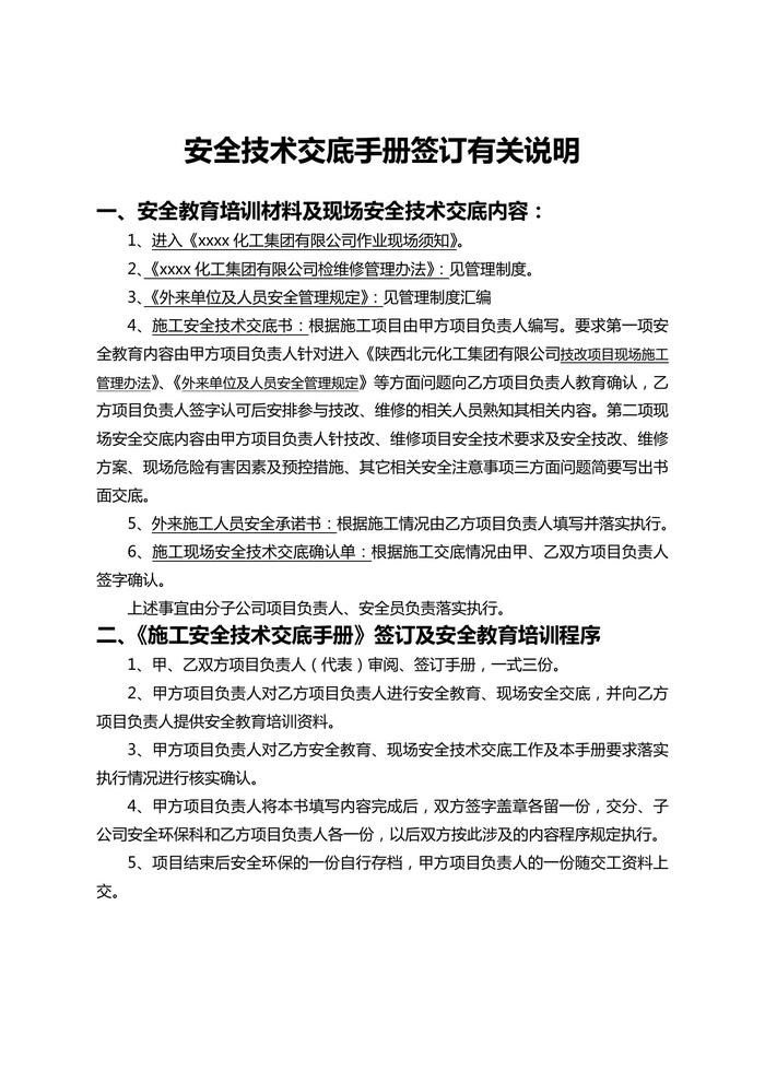 化工公司施工安全技術(shù)交底手冊 (18頁)doc