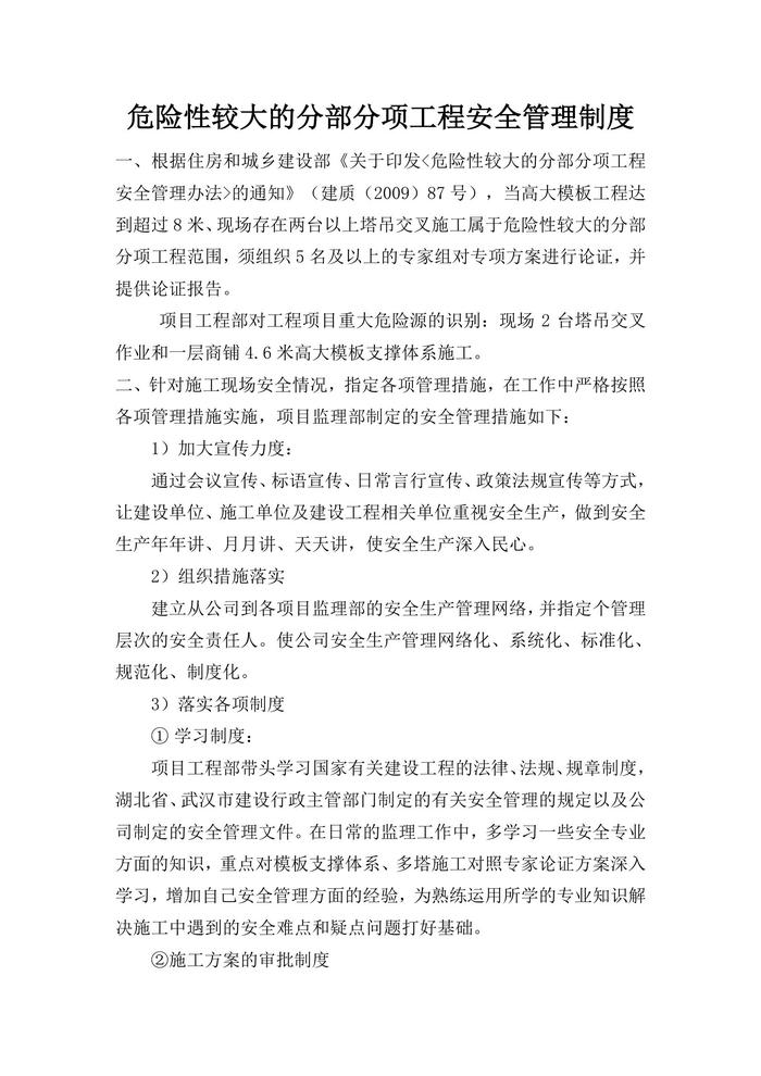 危險(xiǎn)性較大的分部分項(xiàng)工程安全管理制度doc