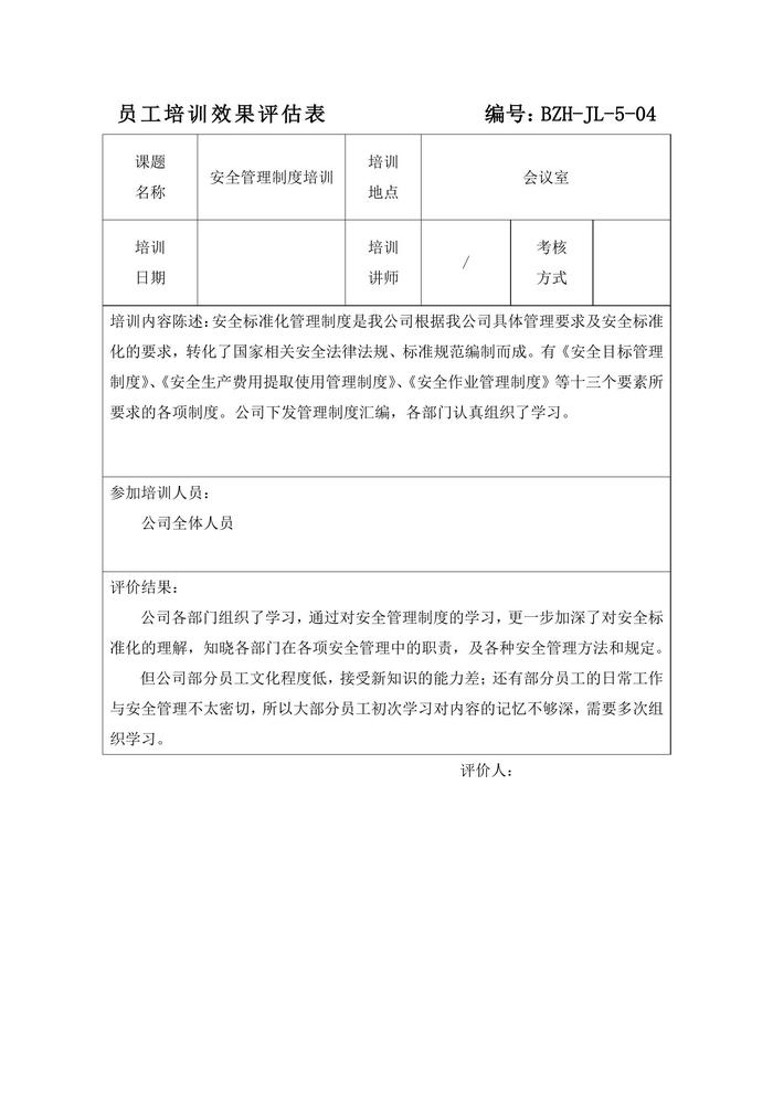 員工培訓(xùn)效果評(píng)估表doc