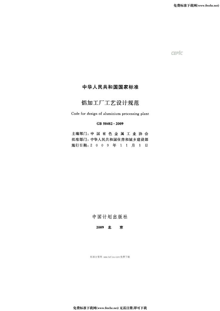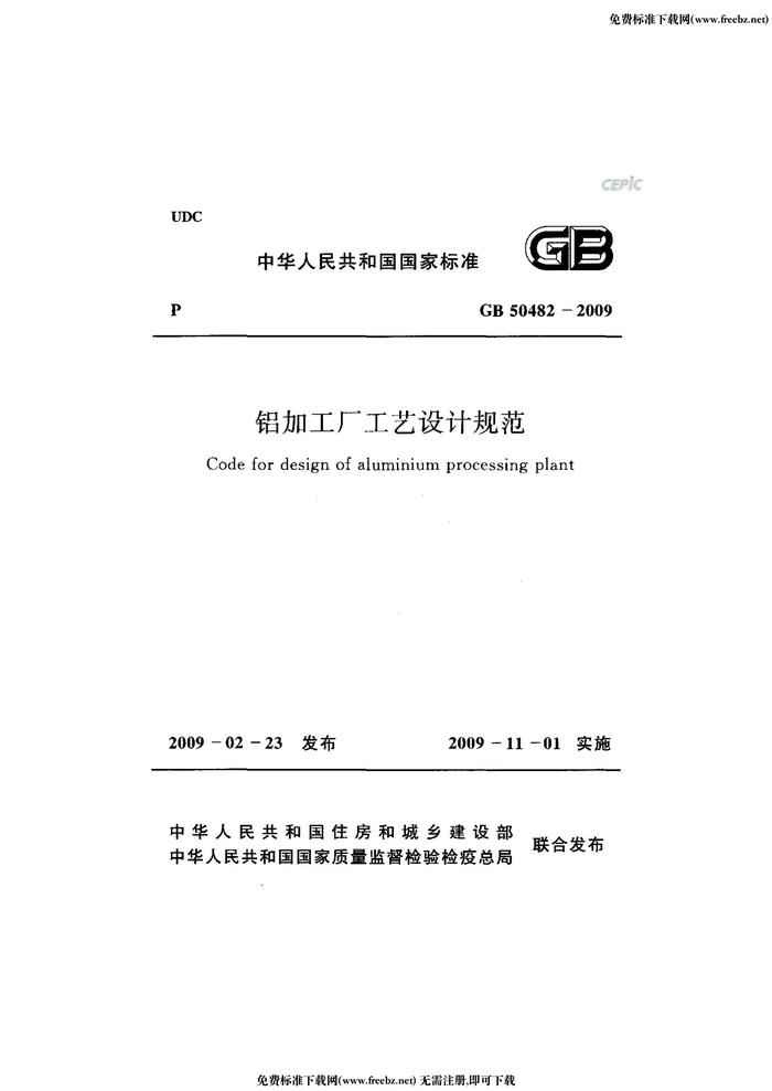 GB 50482-2009 鋁加工廠工藝設(shè)計規(guī)范 附條文說明pdf