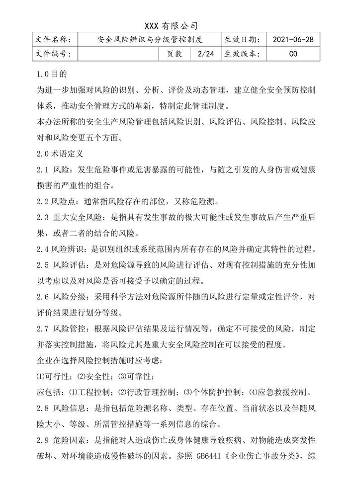 C20210625XX公司風(fēng)險(xiǎn)辨識與分級管控制度匯編doc