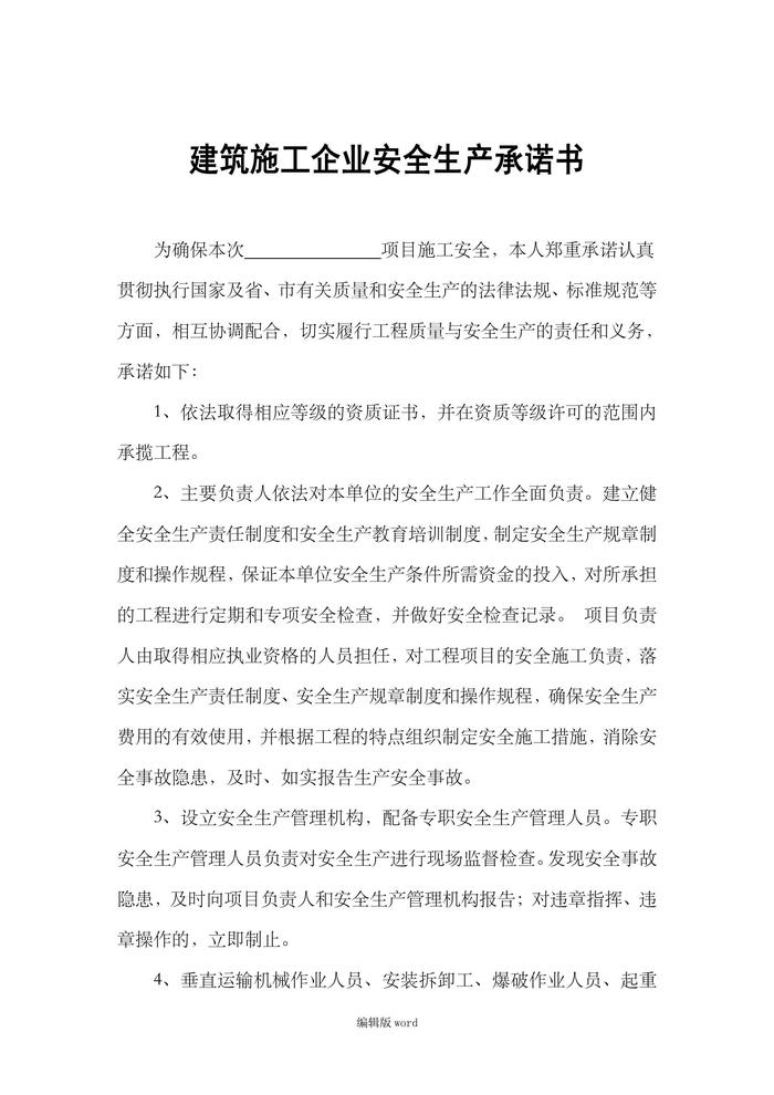 建筑施工企業(yè)安全生產(chǎn)承諾書最新版本(1)doc