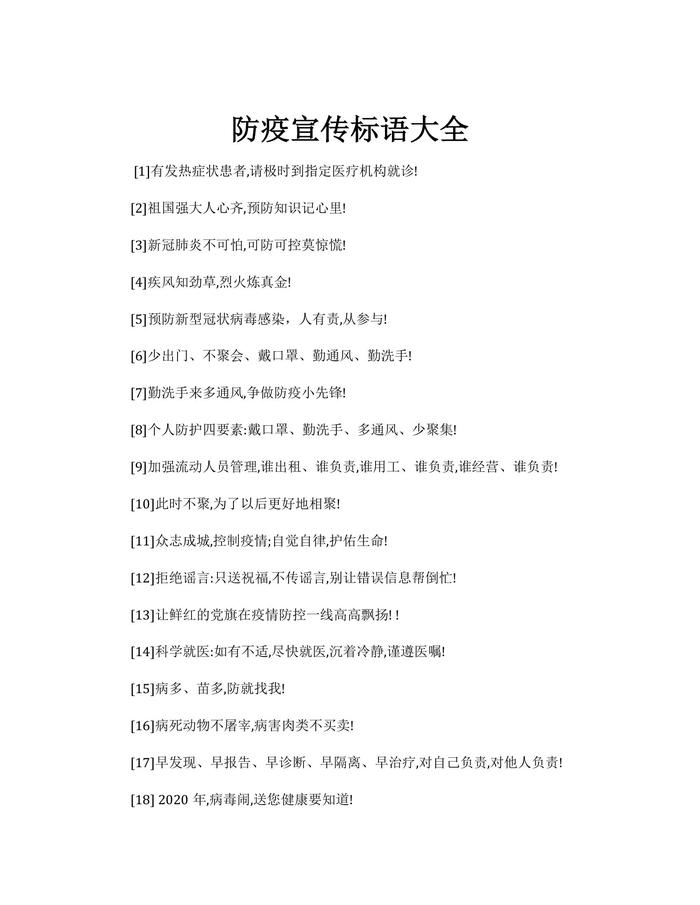 防疫宣傳標語大全docx
