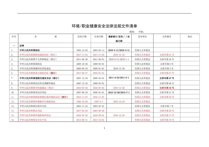標(biāo)準(zhǔn)化EHS法律法規(guī)文件清單doc