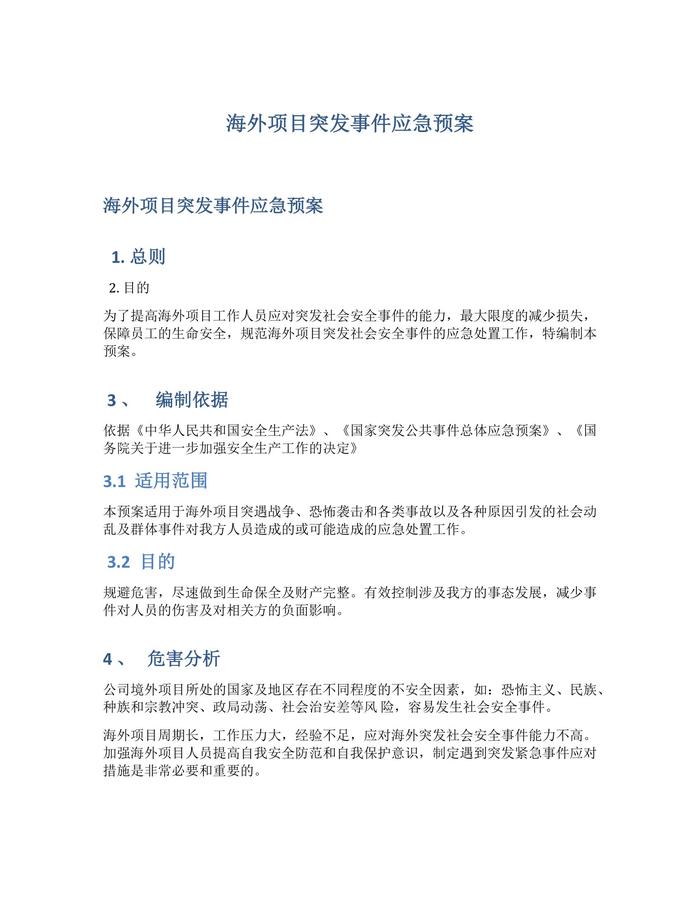 海外項目突發(fā)事件應(yīng)急預(yù)案(1)docx
