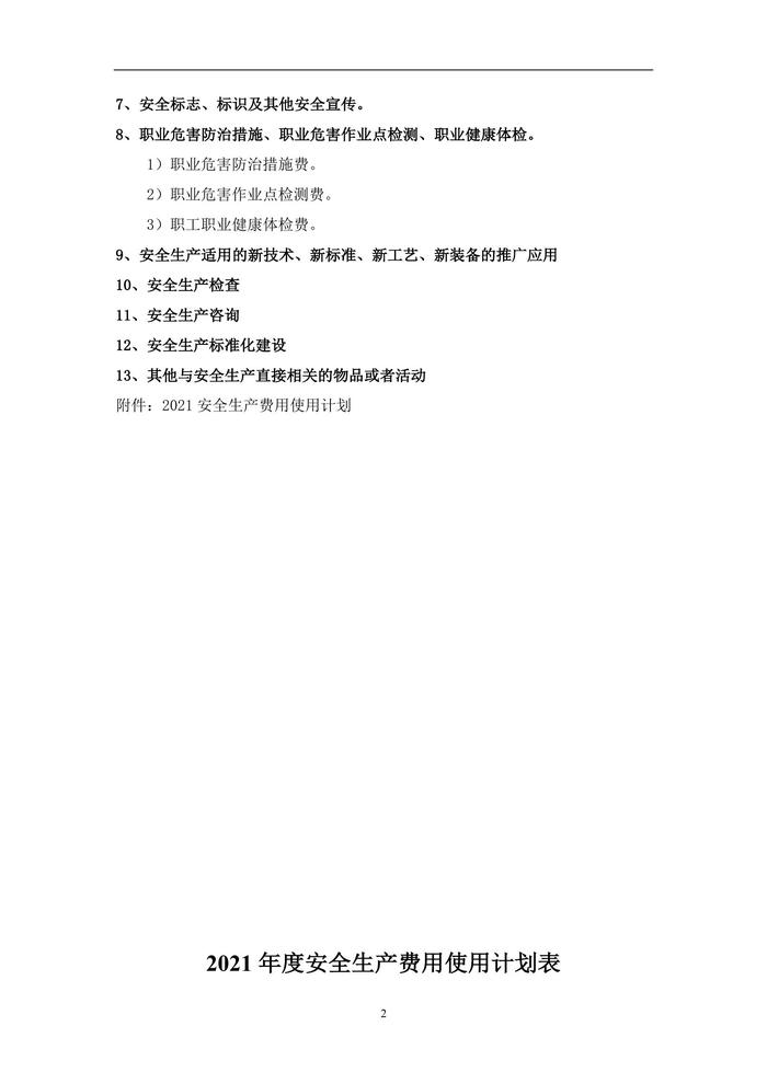 「預(yù)算模板」2021年度安全生產(chǎn)費用使用計劃doc