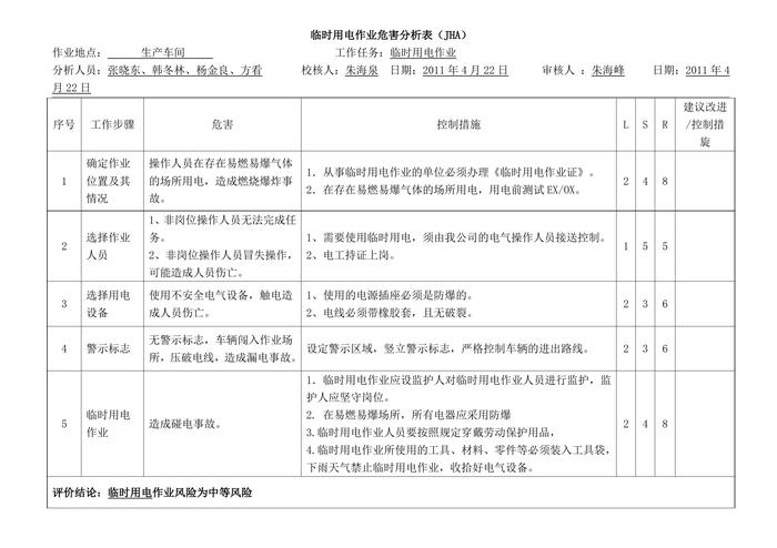 【制度】危險(xiǎn)作業(yè)(動(dòng)火、登高_(dá)受限空間_破土臨時(shí)用電)JHA分析(1)doc