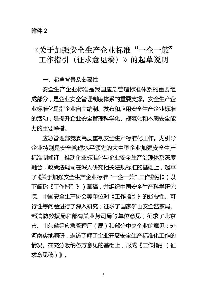 日《關(guān)于加強安全生產(chǎn)企業(yè)標(biāo)準(zhǔn)“一企一策”工作指引(征求意見稿)》的起草說明(1)docx