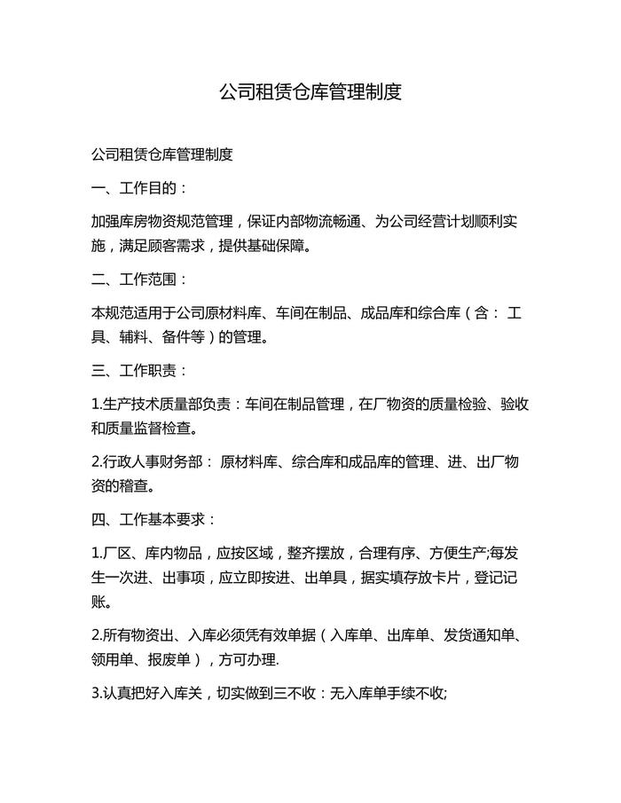 公司租賃倉庫管理制度docx