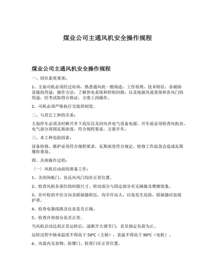 煤業(yè)公司主通風(fēng)機(jī)安全操作規(guī)程docx