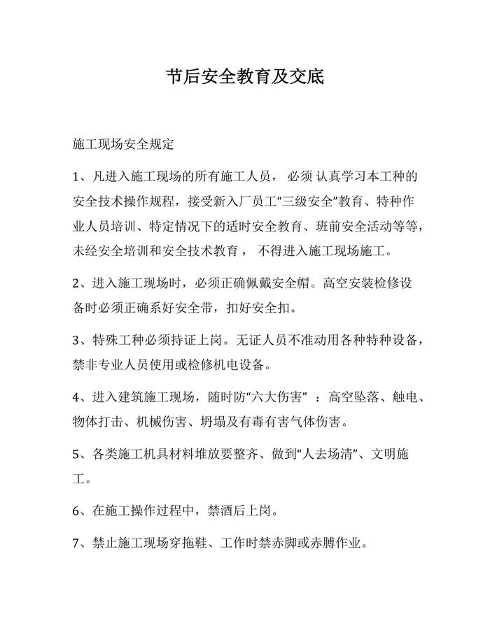 節(jié)后安全教育及交底docx