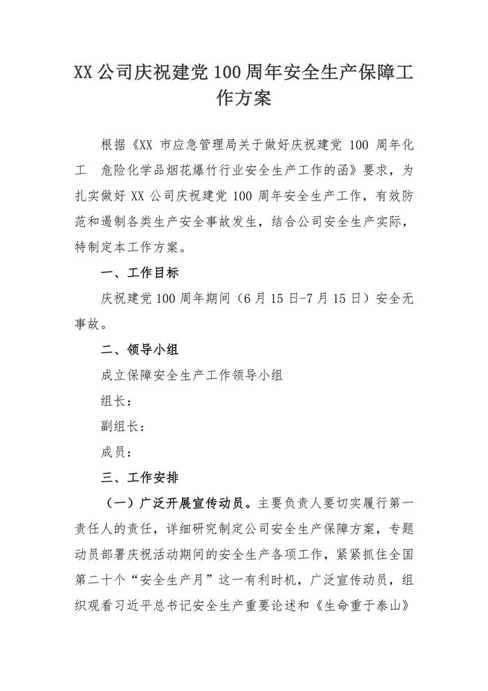 XX公司慶祝建黨100周年安全生產(chǎn)工作方案docx
