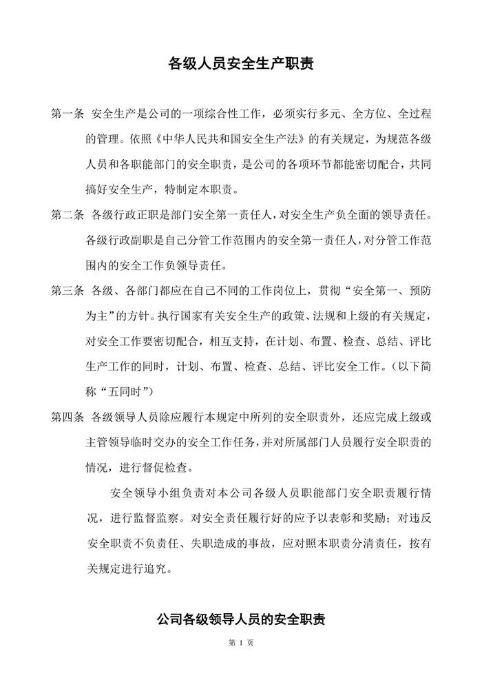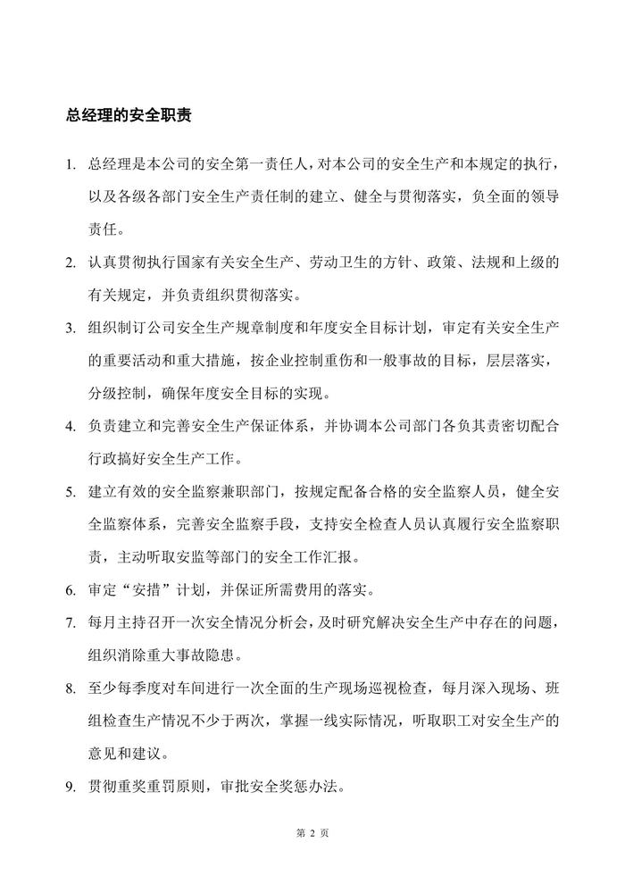 一般制造業(yè)安全生產(chǎn)管理責(zé)任制(1)doc