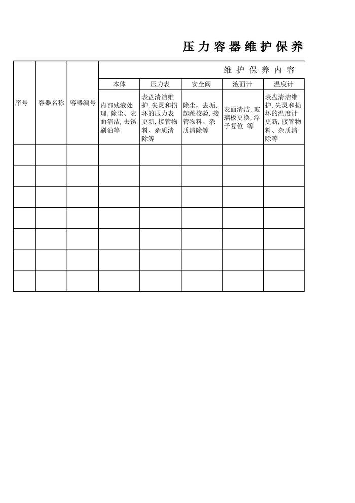 壓力容器維護(hù)保養(yǎng)記錄xls