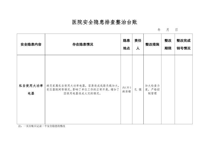 醫(yī)院安全隱患排查整治臺(tái)賬doc