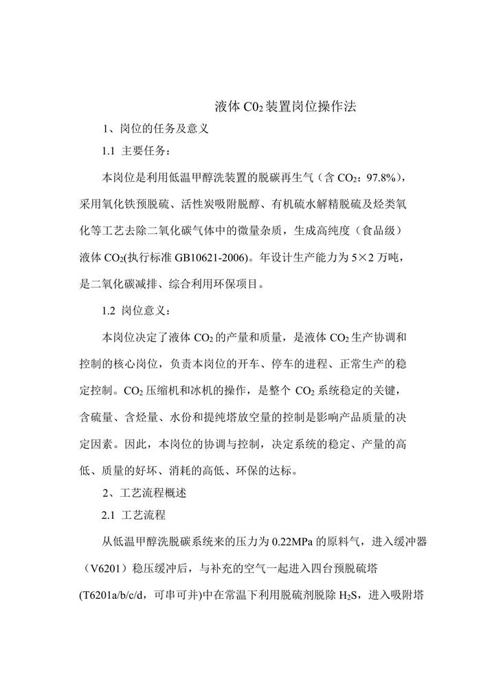 液體二氧化碳崗位操作法(55頁)doc