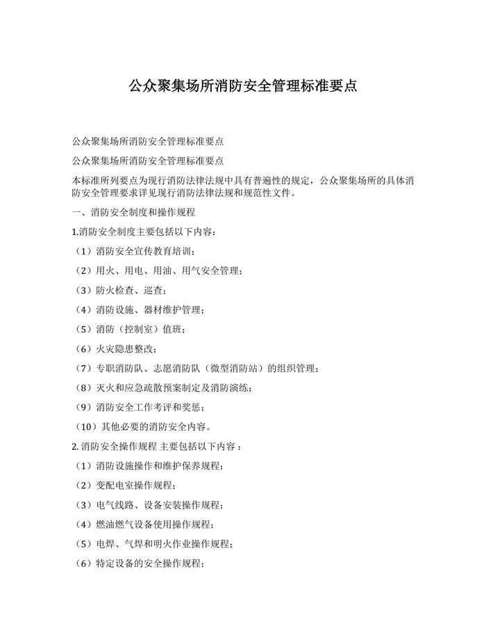 公眾聚集場所消防安全管理標準要點docx