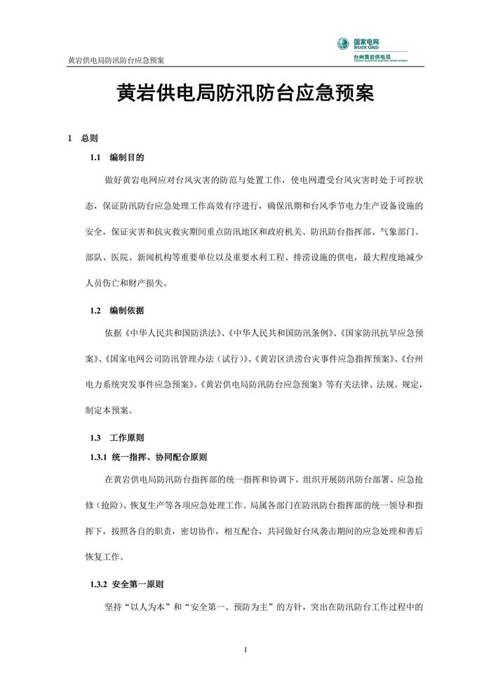 黃巖供電局防汛防臺(tái)應(yīng)急預(yù)案doc