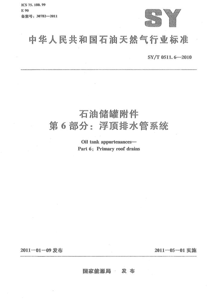 SYT 05116-2010; 石油儲(chǔ)罐附件 第6部分:浮頂排水管系統(tǒng)pdf