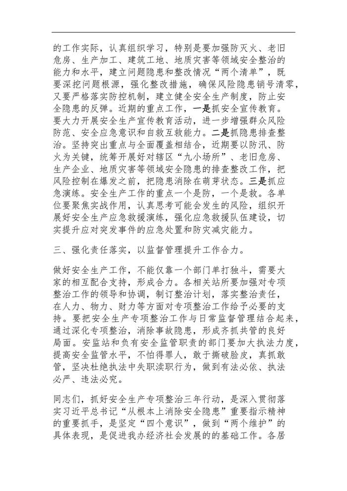 安全生產(chǎn)專項整治三年行動總結(jié)會講話2篇docx